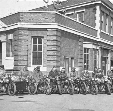 With the advent of WW2 motorcvcling for pleasure or sport was put on hold, with petrol supply restricted due to rationing. However, at the end of hostilities, the club resumed with ever increasing members. a larger venue was required from its then present location of the St Johns cvcle club. This came in the form of an abandoned shower block in 1953 on the site the former RAF Perdiswell air field. which the war office had reauisitioned in 1937. Despite its extremely dilapidated condition, being left dormant since its de-commissioning in 1945, its members manv ex -service men and women, came together to progressively convert this utility to a welcoming meeting place for motorcyclist of all interest.